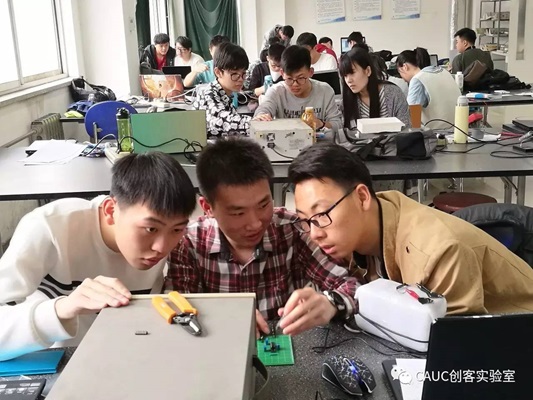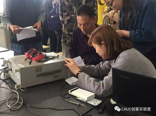 下午一点,紧接着就进行了现场测试,我们请到熊兴隆和黄建宇老师作为评委,根据作品完成情况,仪器使用熟练程度等现场做出了相关评分。