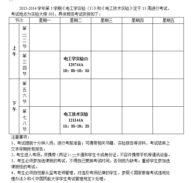 《电工学实验(I)》和《电工技术实验》课程考试通知