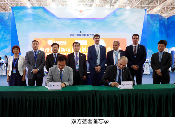During the 2018 China Air Show, on November 7th, CAUC signed an MoU of electric taxiing innovative program with Safran Landing System and ENAC. Mr. Jean-Paul Alary, the CEO of Safran Landing System and Mr. Bai Jie, Vice President of CAUC signed the MoU on behalf of the two parties.