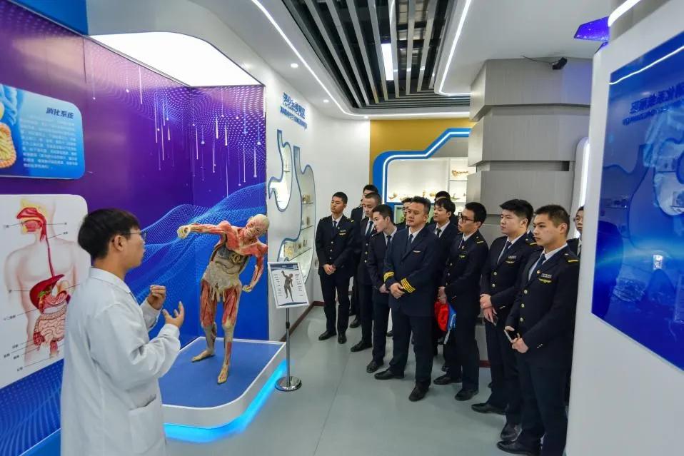 此次活动由扎兰屯职业学院医学系讲解员带领学员们展开,生命科学馆展厅经过精心设计,从微观的细胞结构到宏观的人体模型,从古老的生物进化历程到现代的生命科学前沿技术,每一个展示区域都仿佛是一本生动的教科书。在讲解员的解说下,大家了解了生命的起源、人体的系统与构造、健康与疾病等相关医学常识。通过参观学习,学员们对于“敬畏生命”有了更深刻的了解和认识,领会到敬畏生命是民航人的价值追求与发展根基,清楚体会到民航人的职业操守。