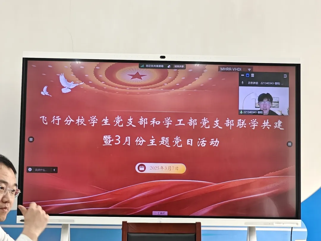 3月7日下午,飞行分校学生第一、第二党支部与学工部党支部开展联学共建,举行3月份主题党日活动,全体津内外党员参加。
