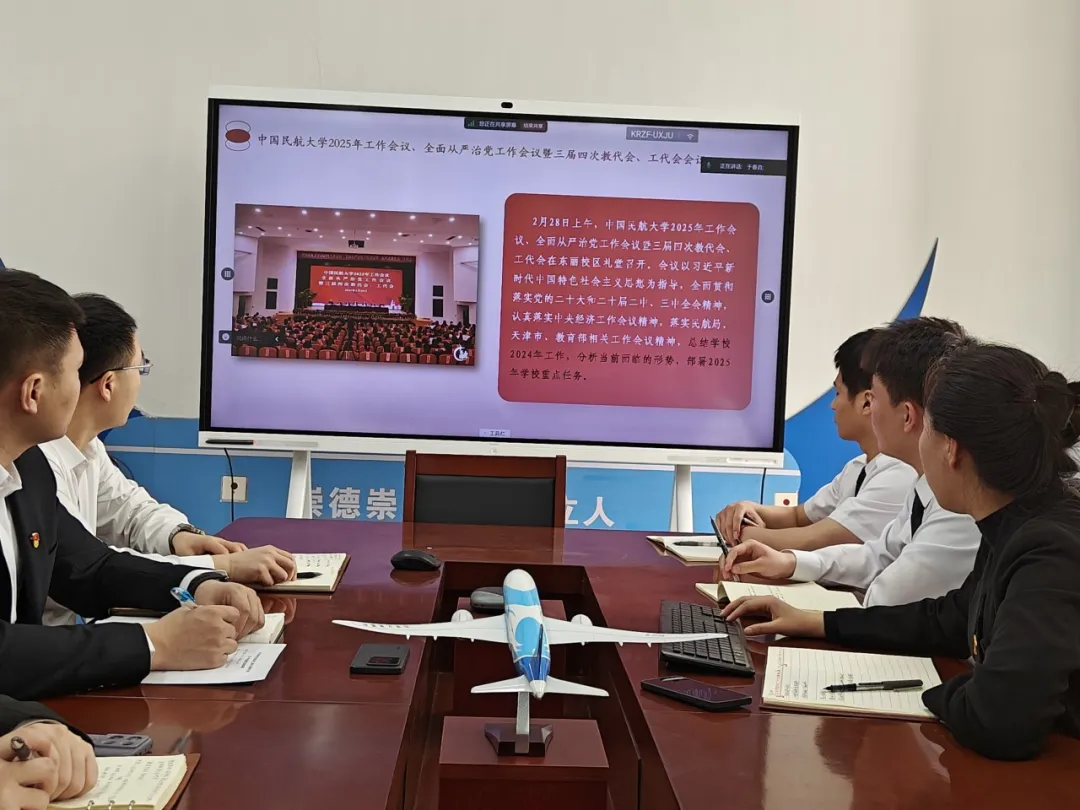 学生第二党支部宣传委员潘如领学中国民航大学2025年工作会议精神。