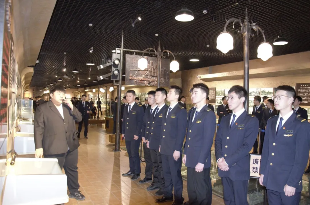 学生们在讲解员的引导下,参观了馆内陈列的铁路工人物品、历史图片及保存完好的铁轨等文物。这些展品生动还原了中东铁路从1898年修建到新中国成立后的发展历程。