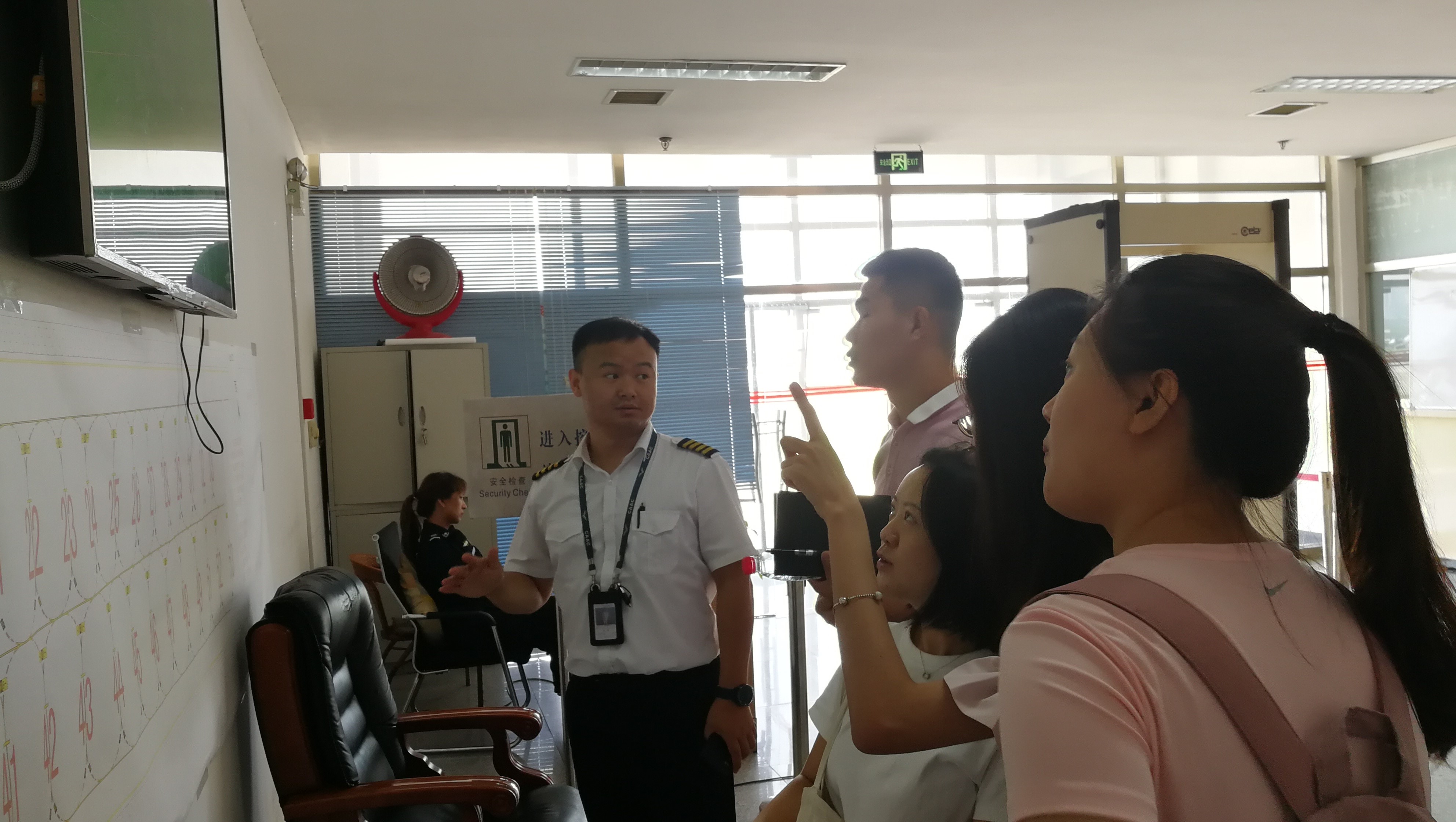 在朝阳飞院的支持和协调下,5位老师与各部门的工作人员进行交流学习,先后前往维修控制现场、航务运行控制中心、安监部、飞标部、飞行大队部、朝阳塔台,与一线的工作人员、管理人员、飞行教员和飞行学员,进行了深入和热切的讨论、学习和借鉴。