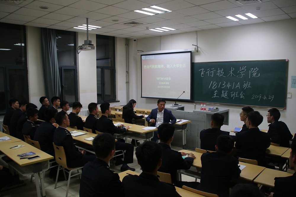 4月29日晚上,飞行技术学院181341A班在北教25-116召开了“把当代民航精神融入学生生活”主题班会。校党委副书记赵洪海参加了此次班会。