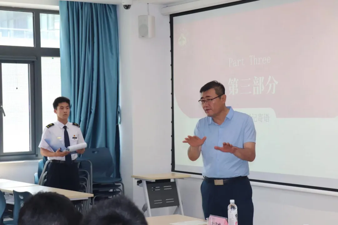 孙书记充分肯定了班级建设取得的累累硕果和班级同学表现出的优良作风,他以自身经历和经验向同学们传授方法、提出期望。一是坚守初心,明确目标。他指出在当下高质量发展的大环境中,时代对于飞行学员提出了更高的要求,无论是理论基础,还是上机实践,都应该更加追求质量,这不仅仅是分校的要求,更是航空公司和民航业的需要。孙书记勉励大家要深入理解PLM理论,精通英语,夯实知识,提升技能,做德智体美劳全面发展的优秀飞行学员。二是摆正态度,积极主动。孙书记援引了真实案例和经典语句,鼓励大家强化主动意识、沟通意识,敢提问、会提问。无论是在日常学习生活中,还是在各类赛事活动中,孙书记鼓励同学们要秉持端正的态度和深入的思考,做人格完善、行动积极、生活健康、全面发展的“大写的人”。三是安全至上,自律自爱。孙书记要求飞行学员固守安全至上的理念,不仅要防范交通、饮食等传统意义上的隐患,更应注重防范时代衍生的电信诈骗等不安全因素,强调了法律是飞行学员的底线,要做到自律自爱,对自己的行为负责。