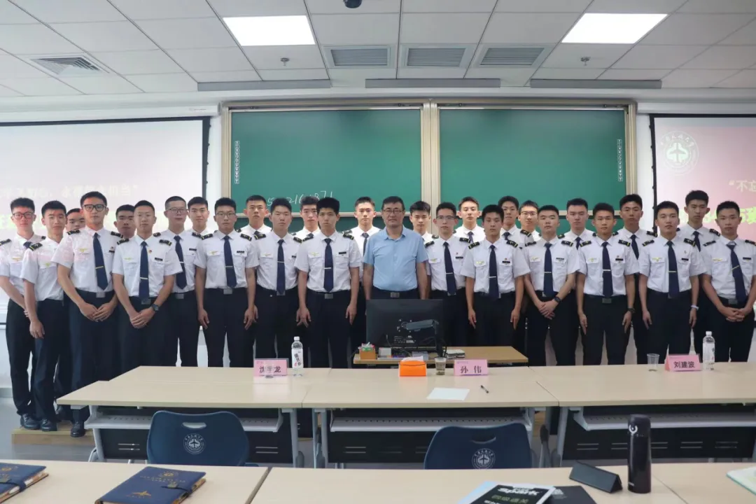 孙书记的寄语旁征博引、立意深远、内涵丰富,班级成员纷纷表示,聆听孙书记的谆谆教诲,深切体会到“不忘学飞初心,永葆信念担当”不仅仅是一句铿锵誓言,更是吹响脚踏实地行动的号角,大家将牢记孙书记的殷殷嘱托,敢于“争胜”,努力成为新时代的优秀飞行学员。班会最后,孙书记就大家的困惑作解答并与全体学员合影。