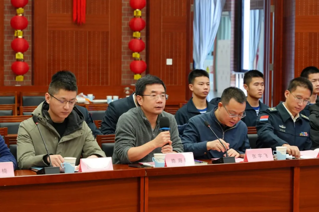 交流会上,清华大学航天航空学院党委书记陈海昕介绍了学院整体概况和与海军航空大学、空军航空大学“双学籍”制联合培养飞行学员情况。
