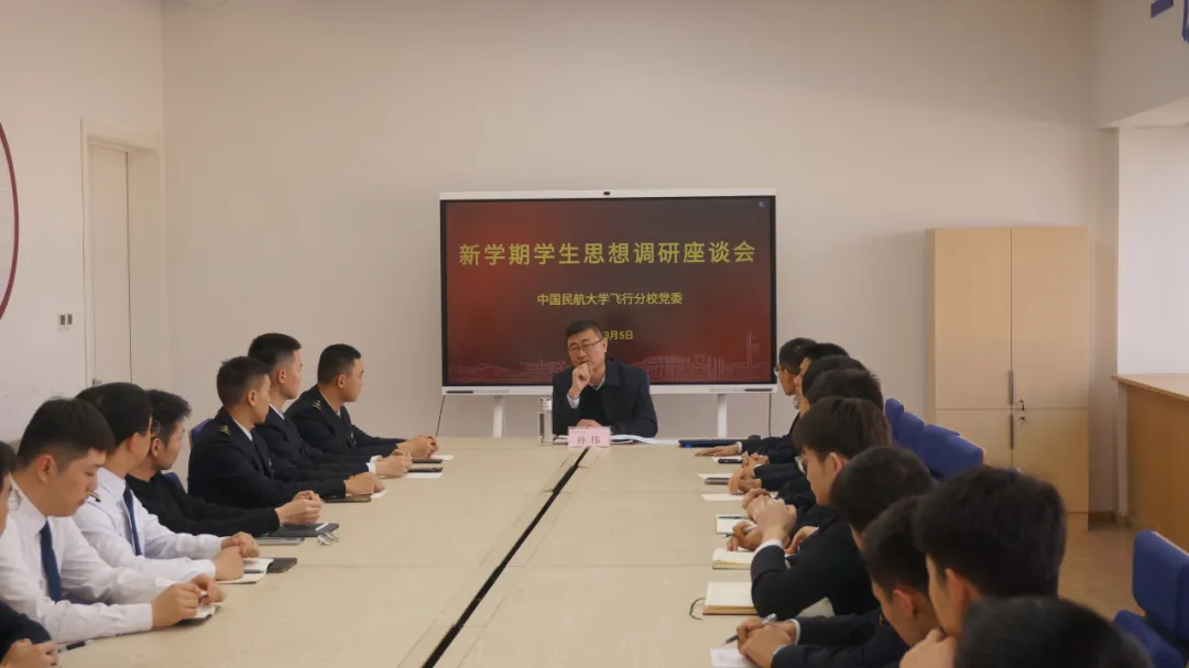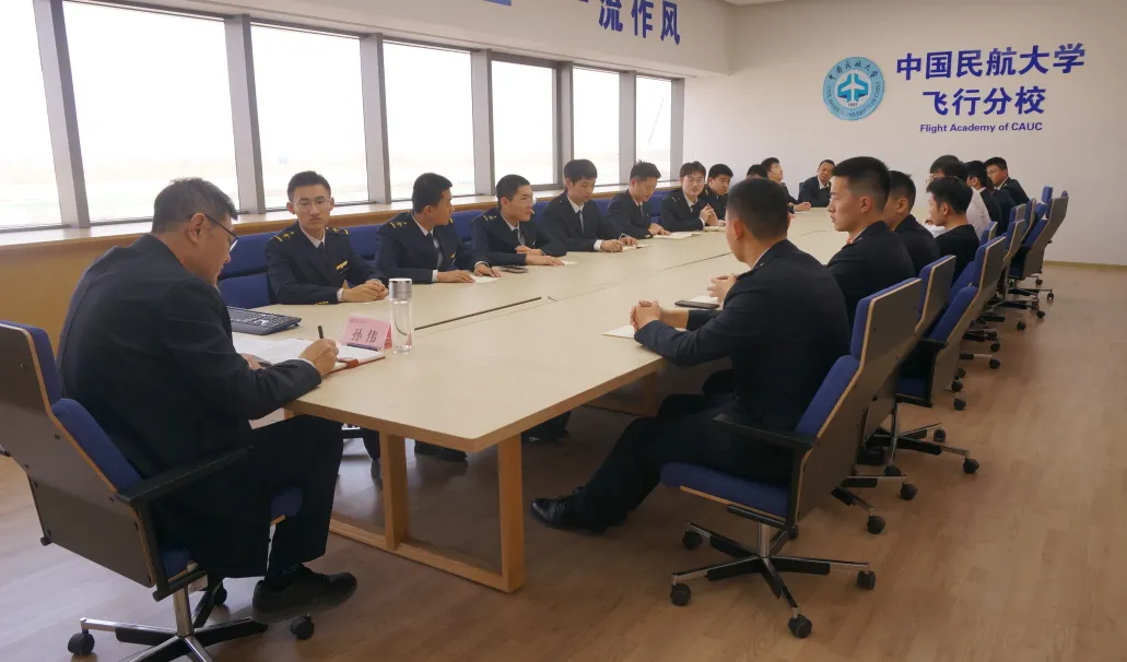 会议围绕学员思想建设、学业进展、作风表现、职业规划及行业发展需求等方面展开深入交流。飞行学员结合个人学习、训练经历展开热烈分享,孙书记对飞行学员的分享和困惑作出热切回应与指导。