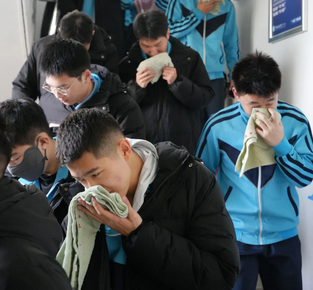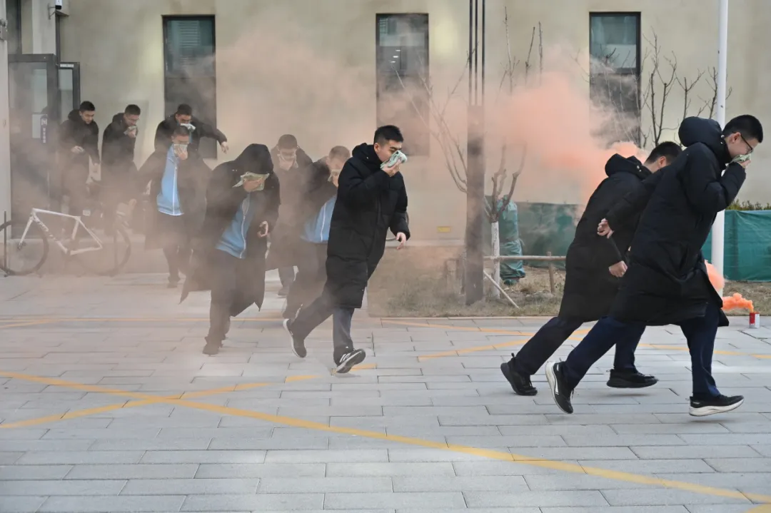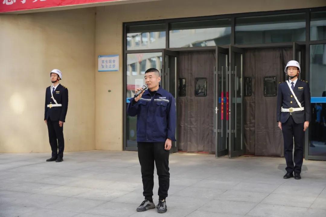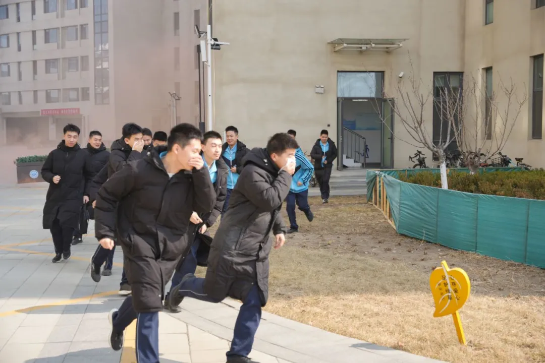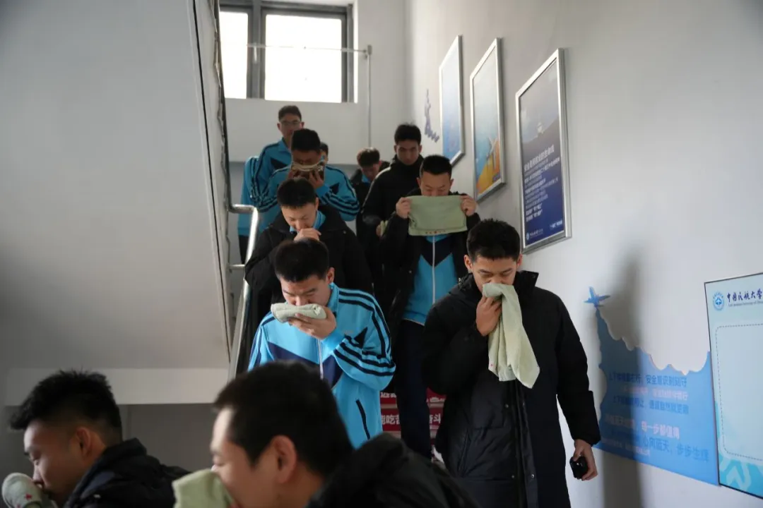 随着警报响起,学员们沿预定疏散路线从宿舍楼有序撤离至安全区域。各班班长现场清点人数并逐级上报,确认全员安全撤离。