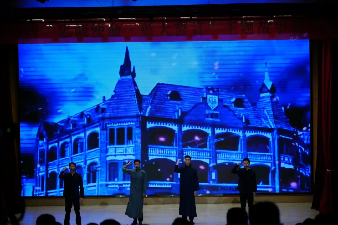 百年前巴黎和会外交失败的暗夜中,一群青年以笔为刃,以声为枪,唤醒沉睡的民族。分校话剧社成员为全场师生演绎话剧《新青年的呐喊》。