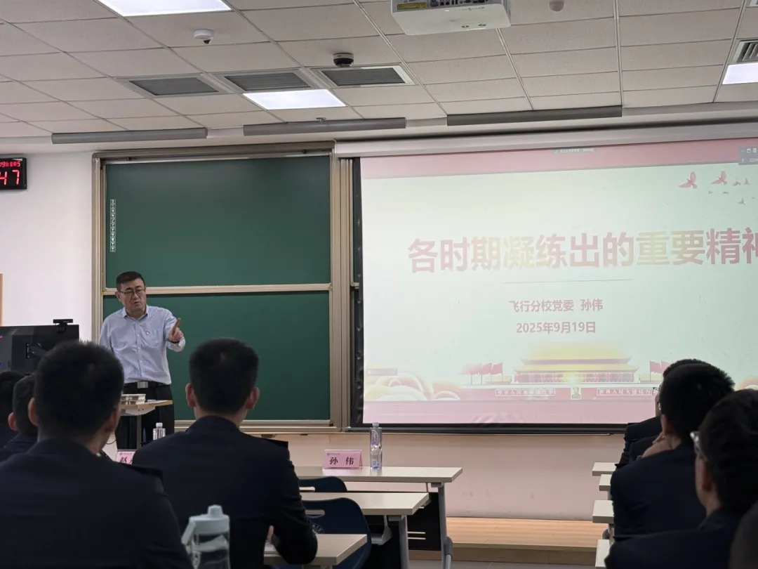 开班仪式结束后,分校党委书记以“中国共产党在各时期凝练出的重要精神”为主题为入党积极分子主讲第一课,为全体学生还原了抗美援朝战争的过程,从“有理、有力、有节”三个方面还原了抗美援朝战争的必要性,生动展示了抗美援朝背后的立国方略和精神传承,深入讲解了邱少云、杨根思等英雄人物的光荣事迹,勉励飞行学员要明确抗美援朝的精神内核,建设自身“忠诚担当的奉献精神、敢于克服困难挑战的勇气、精准依规精诚协作的默契和坚定战胜困难的决心”,进一步坚定信仰、心怀强烈的爱国情报国志,自觉把个人理想与祖国命运联系在一起,在奋斗的青春中与祖国同行。