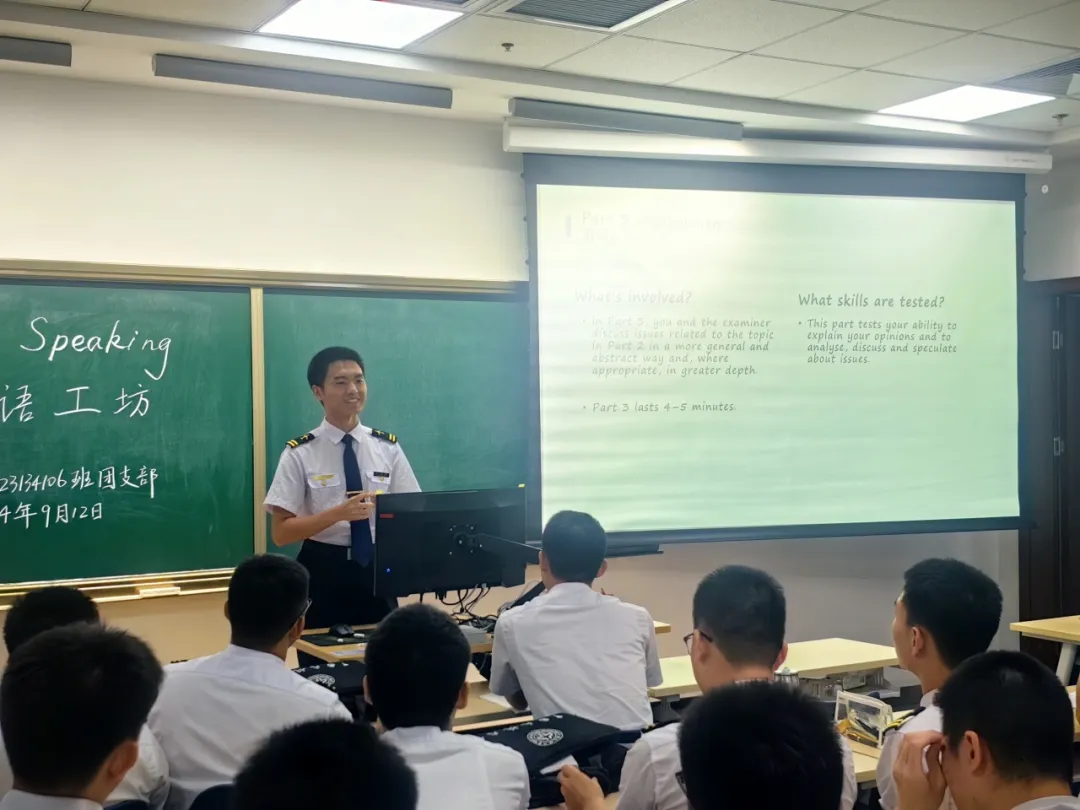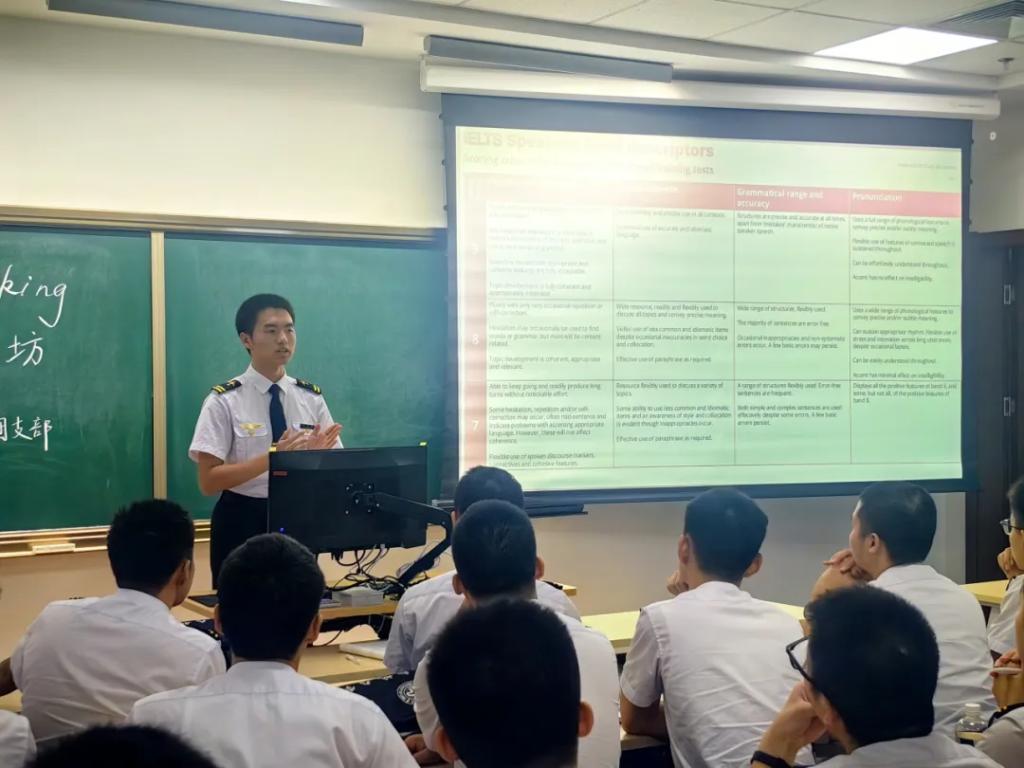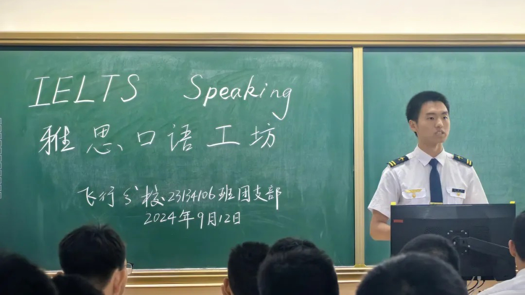 为解决身边同学雅思英语口语考试面临的困惑,帮助同学科学高效地练习口语,努力达到委培航司和民航行业对于飞行学员英语能力的要求,不断向分校国际化飞行人才培养目标靠拢,9月12日晚,飞行分校23134106班团支部在宁河校区公共楼302教室举办“雅思口语工坊”主题团日活动。