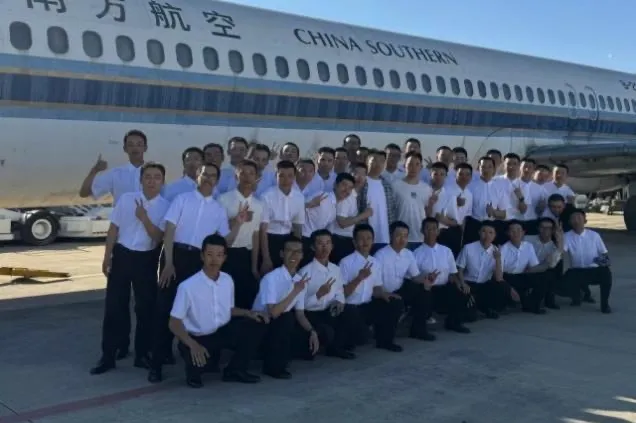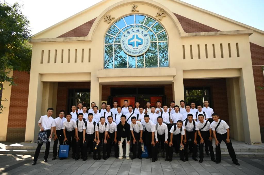 离开承载着历史与荣耀的校史馆后,全体新生满怀憧憬地迈向了紧邻天津机场跑道的校园停机坪。在这片充满现代科技气息的土地上,一架架翱翔天际的飞机静静伫立,它们不仅是我国民航业发展历程中从无到有、由小及大、从依赖到自主创新的生动见证,更是激励人心的时代符号。
