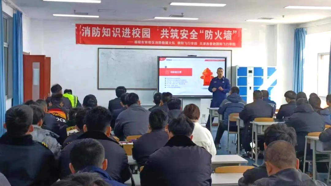 安全教育培训邀请朝阳市双塔区消防救援大队张嘉兴教官主讲防火消防安全培训,杰普逊国际飞行学院、朝阳飞行学院组织90多名教职工和学员参加。张教官从火灾的特性、火灾的预防、火灾的应急处理、常用消防器材介绍和灭火器材使用实操五个方面进行了讲解。通过理论讲解与案例分析相结合的方式,为全体与会人员提供了一次专业且实用的细致辅导。