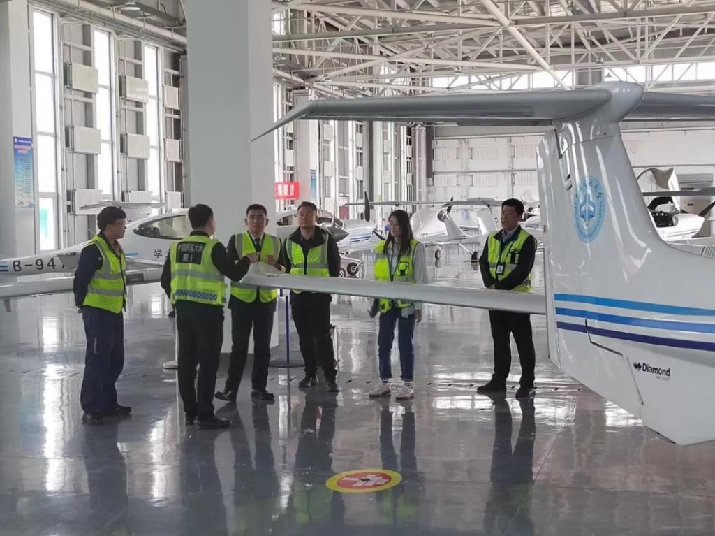 启动仪式结束后,学院领导带领相关工作人员前往机库、航材库、塔台、放行区、监控区等运行保障区域进行安全检查。