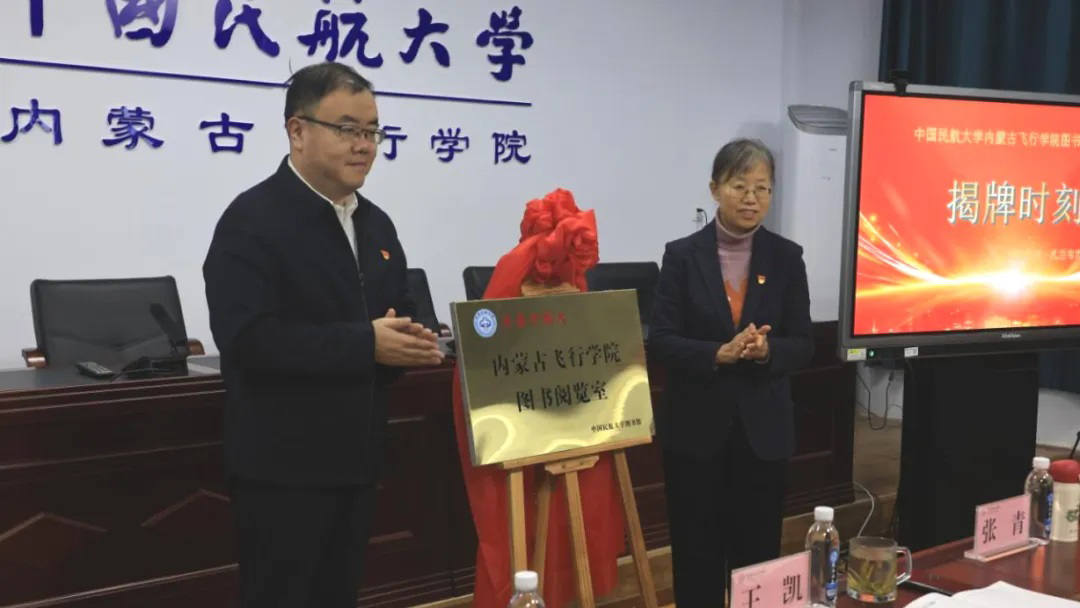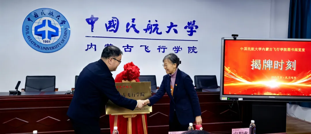图书馆此次向学院捐赠纸质图书2200册、电子期刊480种、纸质期刊400册,并配备了桌椅、书架等相关设施。学院因地制宜,在办公楼、学生公寓、飞行等待大厅以及乌兰浩特基地等多个场所设立了不同规模的阅览室和读书角,旨在方便师生员工在工作训练之余,养成“爱读书、读好书、善读书”的良好习惯,全面提升综合素质,积极营造“书香中航大”的文化氛围。此次揭牌仪式也为今后双方进一步推动资源共享、联学共建奠定了坚实基础。