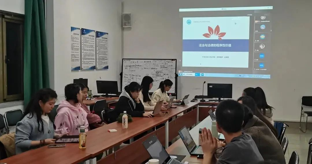 11月19日,中国民航大学法学院孟媛媛老师,在线下南教2-217、线上腾讯会议举办了题为“法治与法律的程序性价值”的专题讲座。主持人为中国民航大学法学院徐美老师,与谈人为国家行政学院(中共中央党校)张峰铭老师,中国民航大学法学院卢刚老师、丁宇魁老师。中国民航大学法学院部分研究生、本科生线下参与了本次讲座,其他高校法学院、律所同仁通过线上参加了本次讲座。