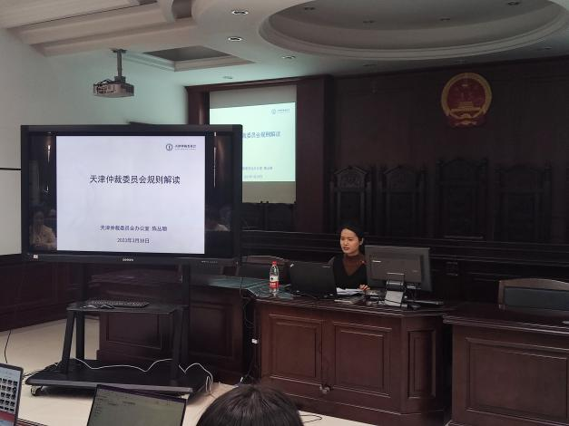 为丰富模拟仲裁课程内容,帮助学生进一步了解仲裁,提高法科学生实操能力,3月28日下午在南教2-106模拟法庭,法学院邀请了天津仲裁委金融仲裁中心陈丛珊专家为学生深入解读天津仲裁委的仲裁规则。本次讲座由孙莉老师主持,大二学生参加。