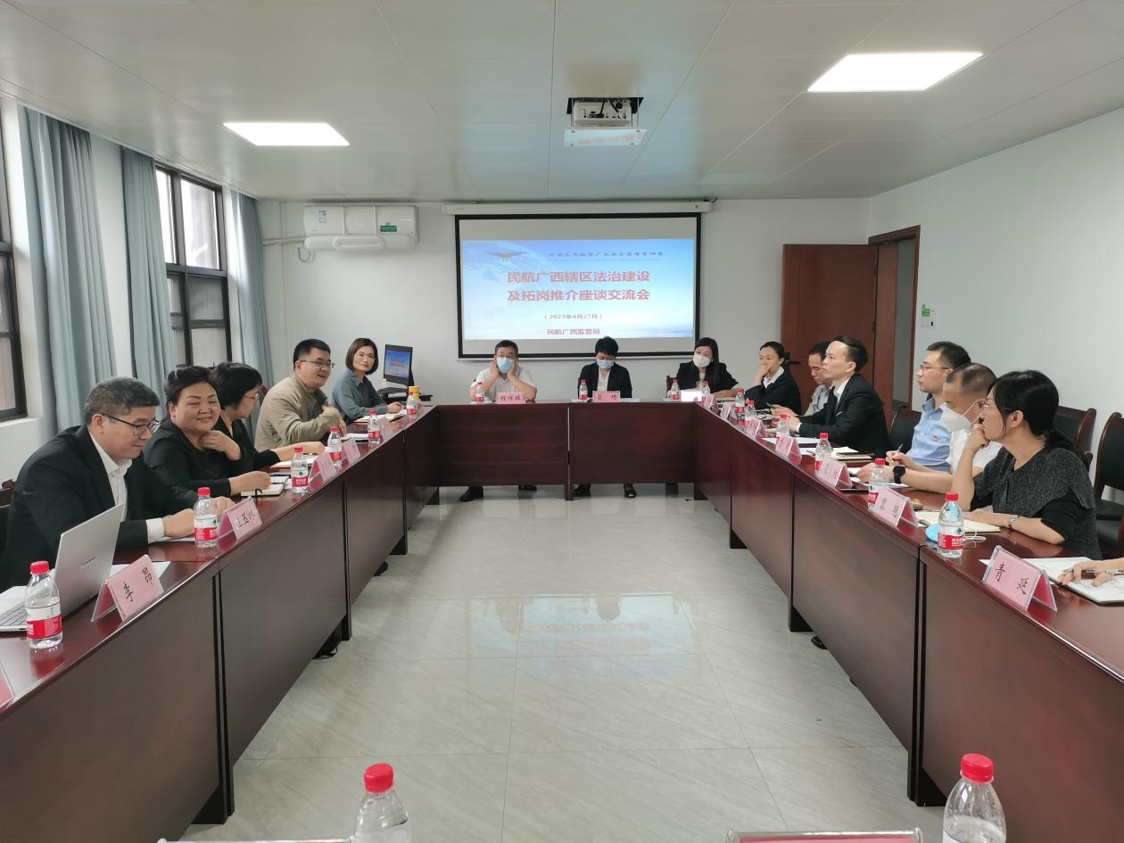 在民航广西安监局的鼎力支持、精心协调下,调研组与安监局、空管分局、机场管理集团、北部湾航空、深航广西分公司等多家民航单位开展了深入的座谈交流。首先,郝秀辉院长系统介绍了法学院的教育教学资源情况和近年来取得的教学科研成绩,表达了法学院能够且愿意为民航单位提供航空法学理论与实践服务,如支持航空法律实务工作、开展民航企事业单位合规性建设,等等,得到与会各家民航单位的响应和期许。随后,参加座谈的民航单位领导们介绍了民航企事业单位关于航空法学、航空法学人才的需求,主要包括两个方面,一是为提高单位法治建设水平、提高员工依法依规执业能力,需要对一些航空运行岗位和服务保障岗位人员开展相关的法律法规培训;二是由于行业要求民航企业设置专门的法律实务岗位,所以民航企业单位明确需要法学专业人才。