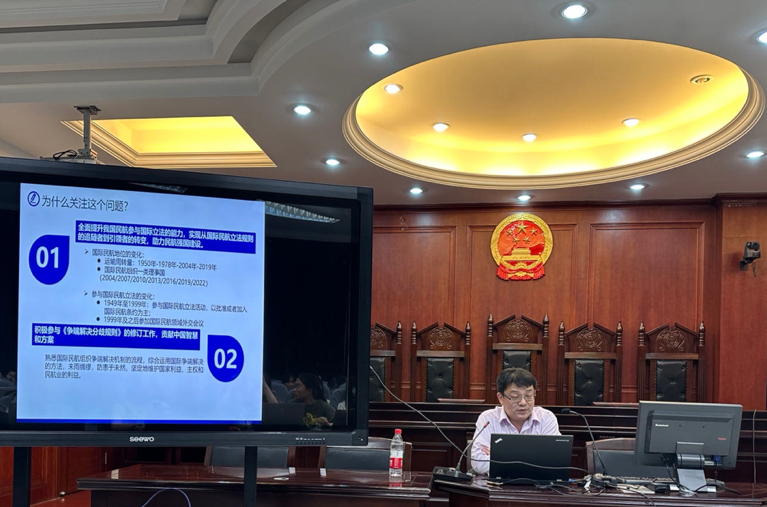 5月20日晚,法学院第三期国际航空法学术讲座在模拟法庭成功举办,围绕“国际民航组织争端解决机制改革新动向”,主讲人民航局国际合作服务中心国际航空法研究部副主任、副研究员赵劲松进行了生动的讲解,法学院国际法教研室主任、副教授刘佳主持,讲师孙旭、助理教授黄如青参加与谈。法学院部分研究生、本科生及其他学院的一些师生线下参加了活动,另有多名师生线上听取了讲座。