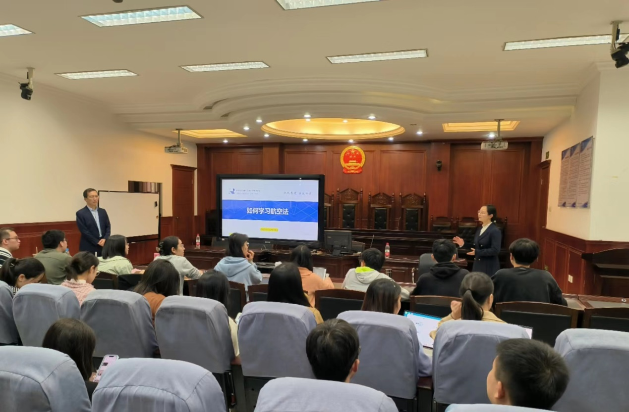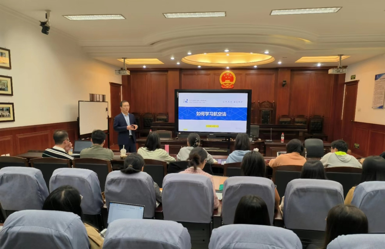 2023年10月19日下午,中国民航大学法学院邀请中国法学会航空法研究会副秘书长、北京仁人德赛(上海)律师事务所合伙人、航空团队负责人李志宏律师作了题为“如何学习航空法”的专题讲座,法学院青年教师孙旭博士主持,黄如青助理教授与谈,法学院2022级、2023级全体硕士研究生听取。