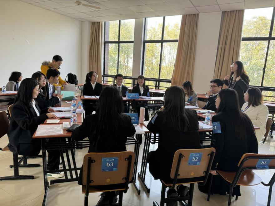 模拟谈判是与辩论、模拟法庭、模拟仲裁并行的实践型人才培养模式。本届“一带一路”实务模拟谈判国际大赛,以“一带一路”倡议内的项目为假设性案例,围绕案例中的核心问题(包括法律、财务、环境、劳工、地缘政治等),通过谈判、协商等方式共同解决该项目中的核心争议或合作议题。比赛全程以英文作为交流语言,由参赛队伍分别代表投资企业、当地政府、当地社会组织和政府间国际组织四方,开展双边、多边等三轮模拟谈判,还原真实的国际谈判场景,实现“沉浸式”的模拟谈判体验。该项赛事是一项具有国际化和创新性的模拟谈判赛事,有利于培养学生的学科交叉、国际谈判和应用国际规则的能力,为“一带一路”倡议发展和涉外法治人才培养提供了一个有效的教育模式与实践载体。本届模拟谈判大赛我校法学院代表队经抽签后代表东盟(政府间国际组织)一方,经过两个多月的精心准备和模拟训练,最终在模拟谈判现场保持沉着冷静、从容应对各种情况、将所学所练稳定发挥,展现法学院学子的风采,获得同场谈判中其他参赛队伍的一致好评,展现了中国民航大学法学院涉外法治人才培养工作的优秀成果。