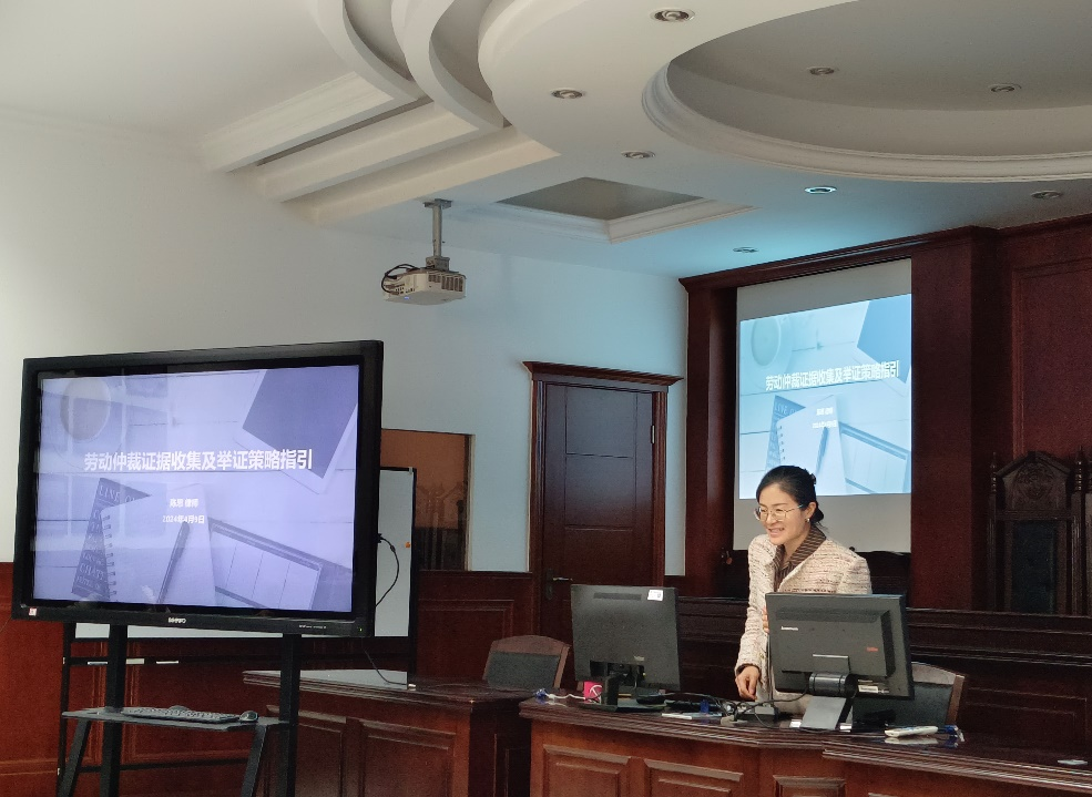 随着当前我国劳动关系的日益复杂化,劳动争议案件频发,在劳动争议案件中如何有效地收集和固定证据,成为解决劳动争议的关键。为进一步提升我院法科学生的实际操作能力和对劳动仲裁领域的深入理解,4月9日下午,法学院在南教2-106模拟法庭,邀请了北京信凯(天津)律师事务所律师、天津港保税区劳动人事争议仲裁委员会兼职仲裁员陈思为学生深入解读劳动仲裁证据收集和举证策略。本次讲座由刘文勇老师主持,40余名本科学生参加。