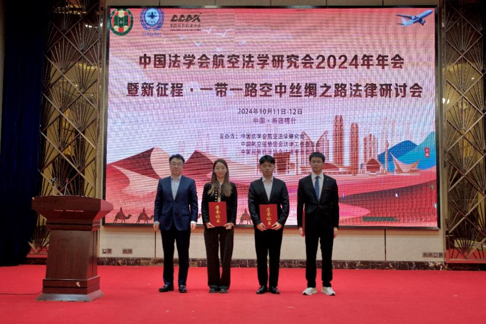 本次年会论坛以“一带一路‘空中丝绸之路’法律研讨”为主题,聚焦“一带一路‘空中丝绸之路’法律保障”、“人工智能在民航应用的法律问题”和“低空经济·通用航空的法律保障”等三个主题,并举办青年航空法论坛。其中,我院贾胜真副教授受邀在“低空经济·通用航空的法律保障”环节发言,2022级研究生李肖受邀在青年航空法论坛发言。