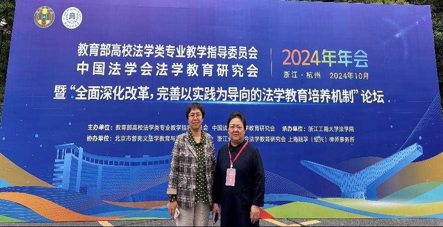2024年10月18—20日,教育部高等学校法学类专业教学指导委员会、中国法学会法学教育研究会2024年年会暨“全面深化改革,完善以实践为导向的法学教育培养机制”论坛在杭州举行。本次会议由浙江工商大学承办,来自国内各高校、研究机构的500多位法律领域的专家学者汇聚一堂,共探新时代法学教育的改革发展。中国民航大学法学院郝秀辉院长、张莉琼教授参加本次年会。