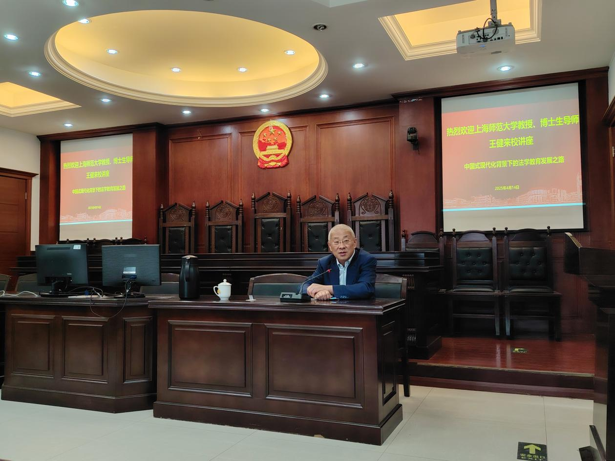 2025年4月14日下午,我院涉外法治高端学术讲坛第十四期开讲,中国法学会法学教育研究会副会长、全国法律专业学位研究生教育指导委员会副秘书长、上海师范大学博士生导师王健教授应邀讲授“中国式现代化背景下法学教育之路”,法学院院长郝秀辉教授主持,80余位师生参加。