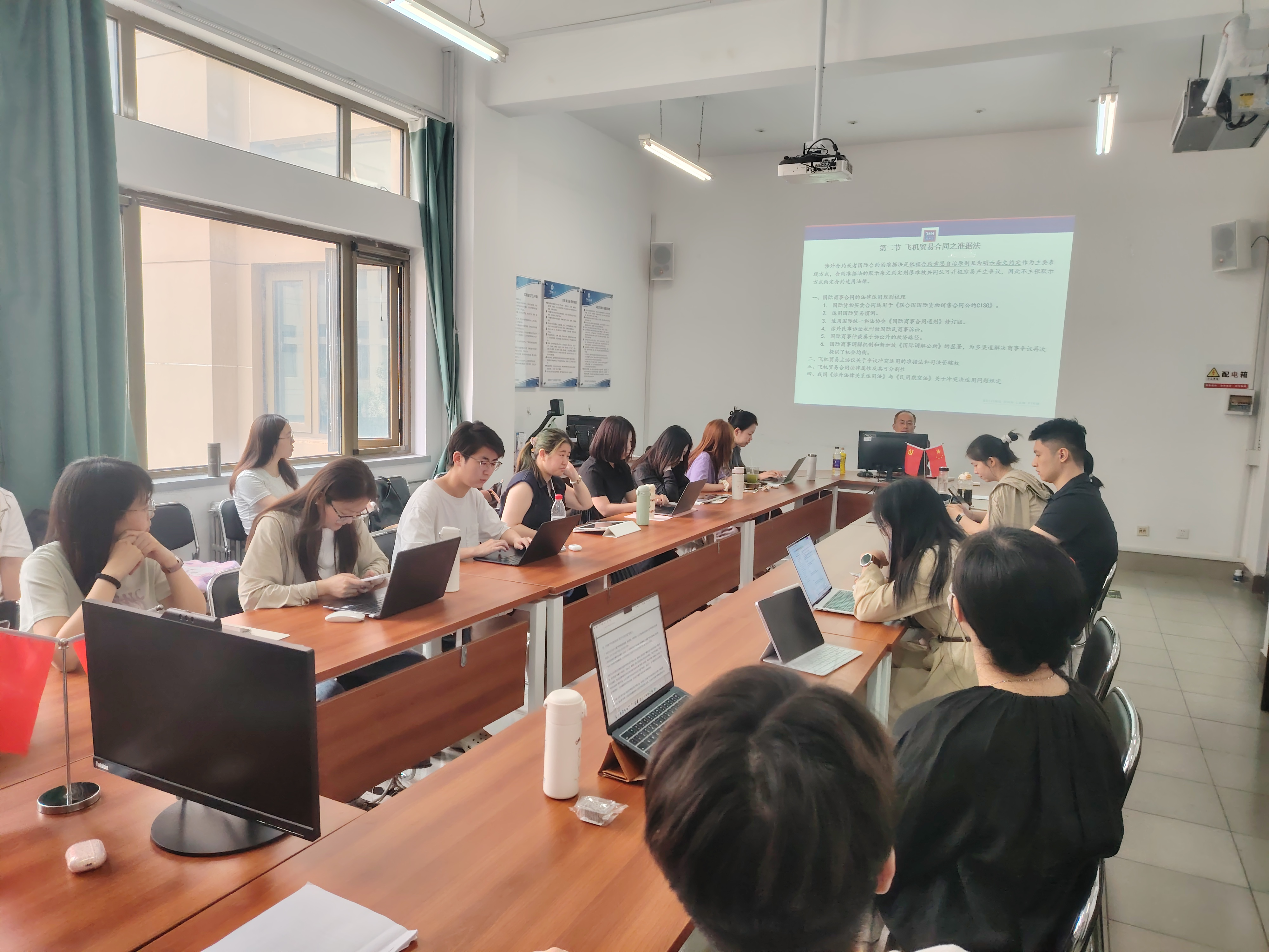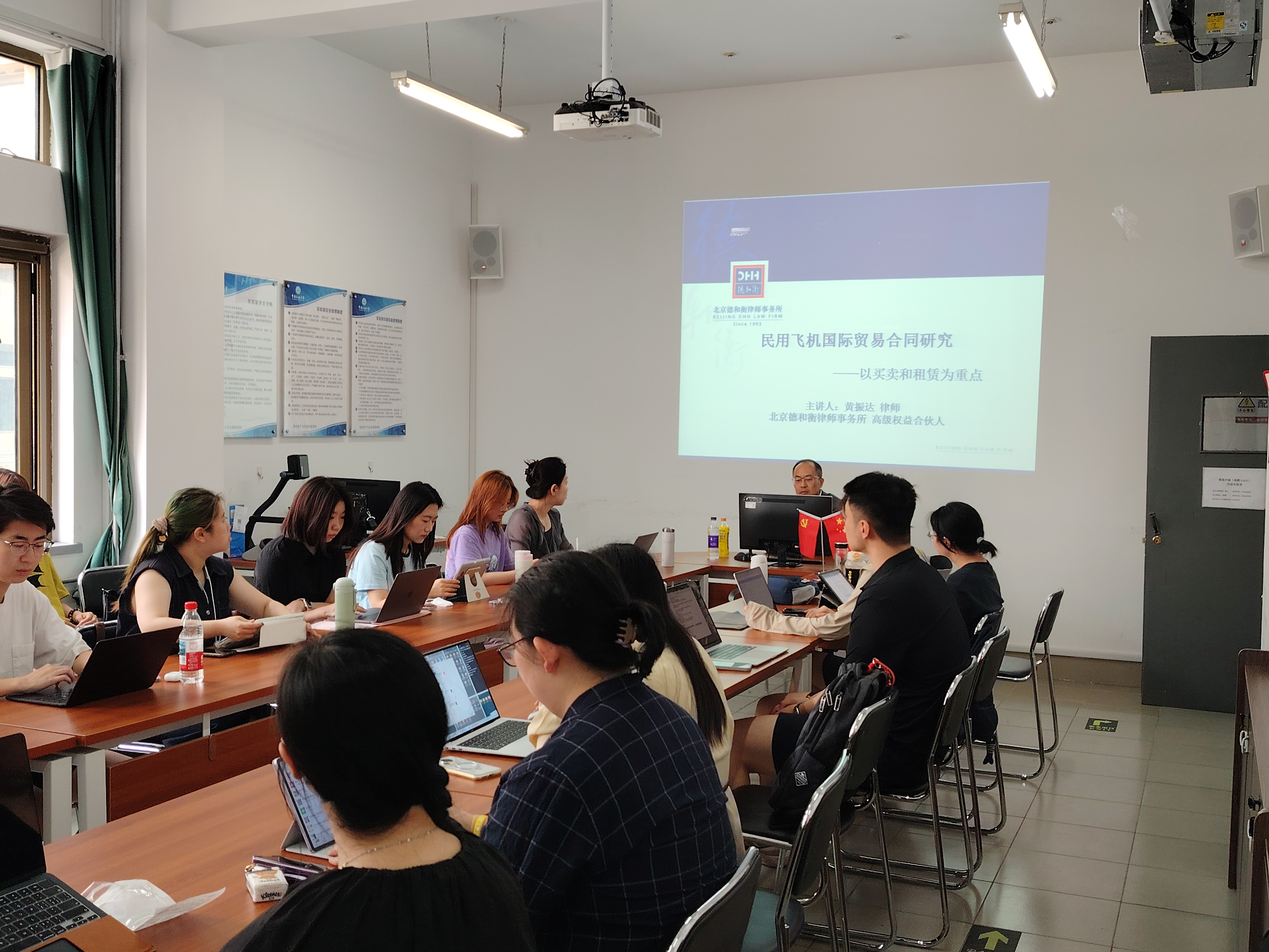 2025年6月5日上午,中国民航大学法学院涉外航空法治高端学术讲坛第十八期暨民商法专业研究生论坛在南教2-217举行。本次活动由北京德和衡律师事务所高级权益合伙人黄振达律师主讲,民商法教研室主任王锡柱副教授主持。民商法专业教师和研究生共30余人共同学习探讨了民用飞机国际贸易合同中的问题。