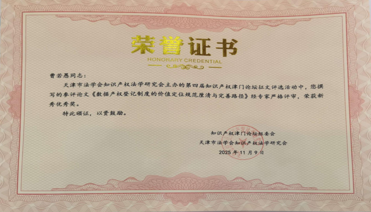 另外,现于山东大学纪检监察学院攻读硕士学位的我院2025届本科毕业生曹若愚撰写的论文《数据产权登记制度的价值定位规范厘清与完善路径》亦在本次论坛中获得新秀优秀奖,这也在一定意义上肯定了我院人才培养方面的探索。
