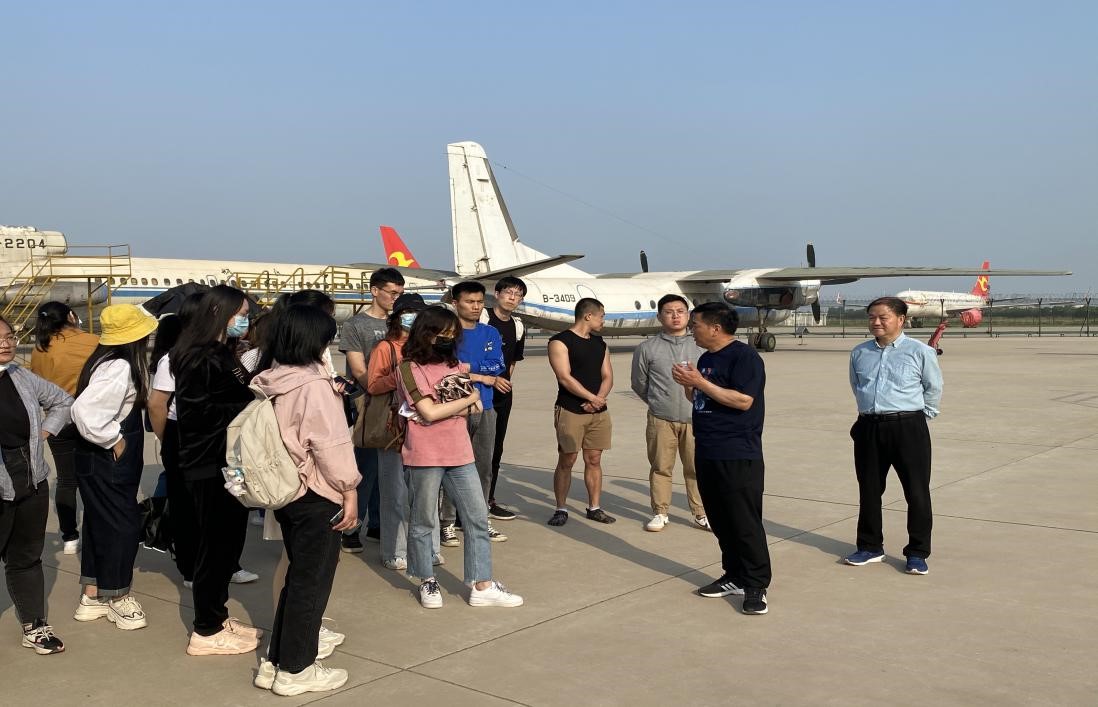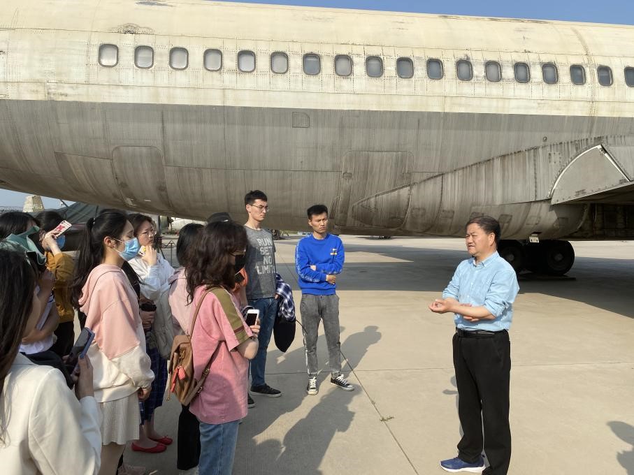 为强化专业学位硕士研究生实践教学,使学生系统了解飞机及其运行的相关知识,2021年5月13日下午,人文社会科学学院(法学院)林泉老师带队2020级专业硕士研究生25人来到了中国民航大学停机坪,开展了现场教学实践活动。中国民航大学工程训练中心王志国老师与林泉老师一起,为同学们系统讲解了民用运输飞机及航空客货运输的相关知识。