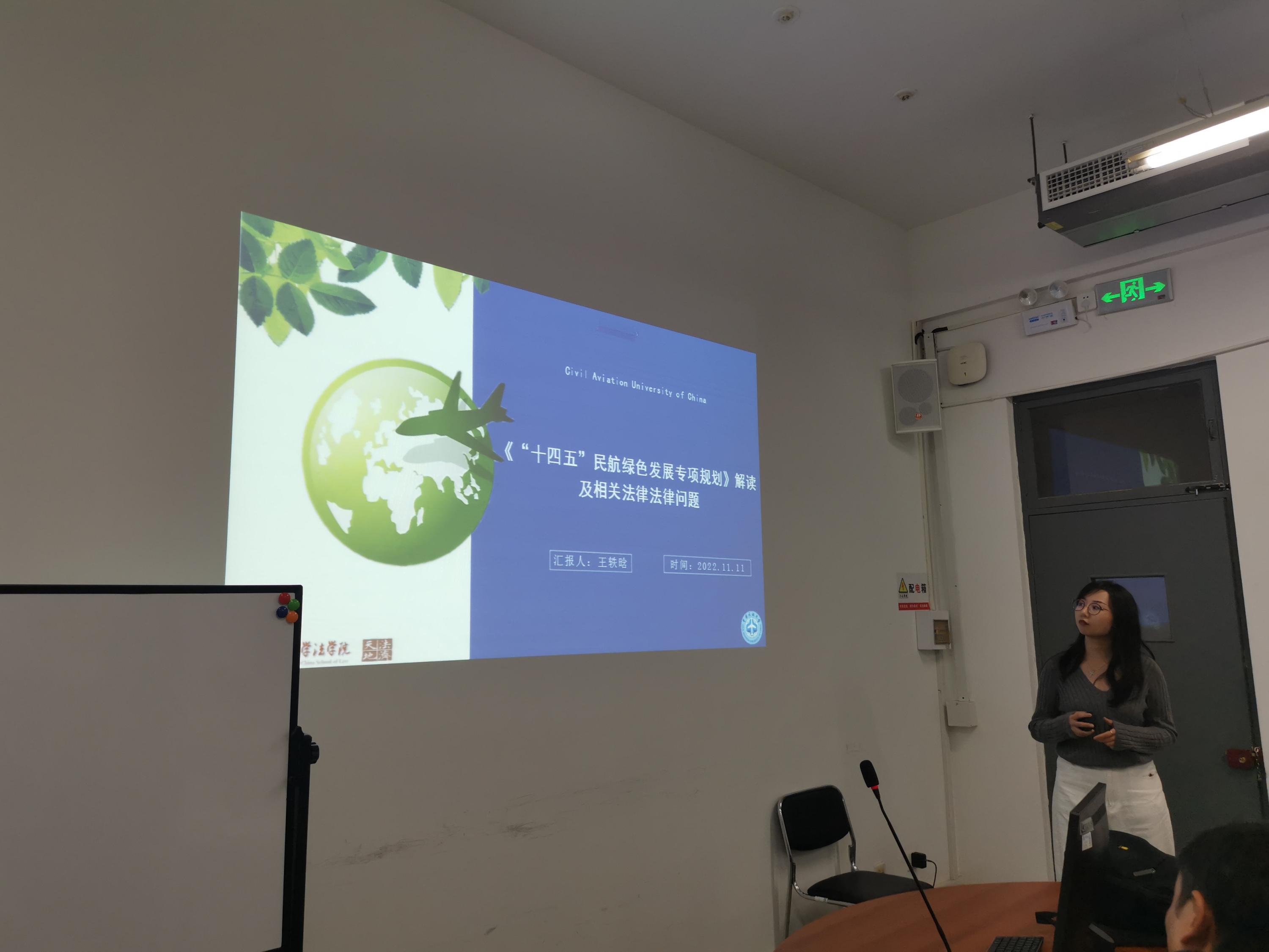 王轶晗老师就《“十四五”民航绿色发展专项规划》及法律问题进行了分析。在分析党的二十大报告中绿色发展的基础上,王轶晗老师重点梳理了民航绿色发展专项规划的新特点、基本原则、主要目标、重点任务等,并举例介绍了在教学中的应用。