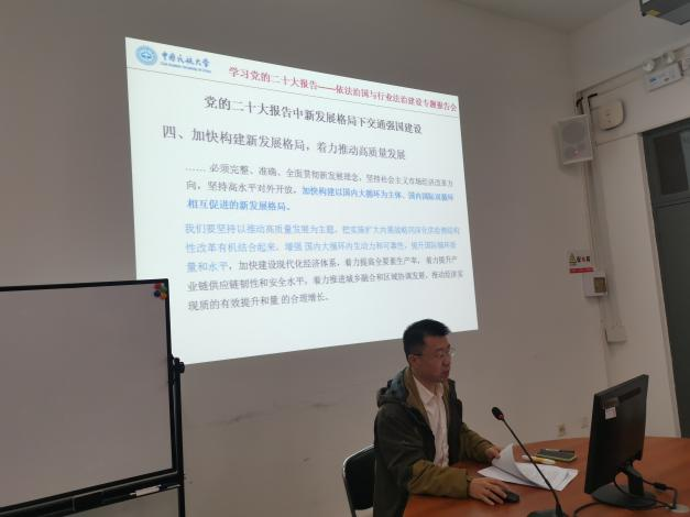 为了深入学习领会党的二十大精神,以二十大精神引领行业法治建设与发展,11月11日下午13:30-16:30,法学院在南教2-217举办了以“学习党的二十大精神——依法治国与行业法治建设”为主题的报告会,专题研讨民航“十四五”发展规划、专项规划与法治保障。法学院党委委员、法学院副院长黄全老师主持会议,法学院全体教职工参加学习。