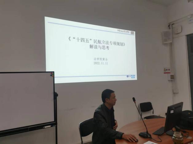 黄全老师解读了《“十四五”立法专项规划》。黄全老师在分析了立法专项规划特点和具体要开展的立法项目之后,提出了“发挥优势、服务民航”和“发挥一横,服务学校”的思考和具体举措。