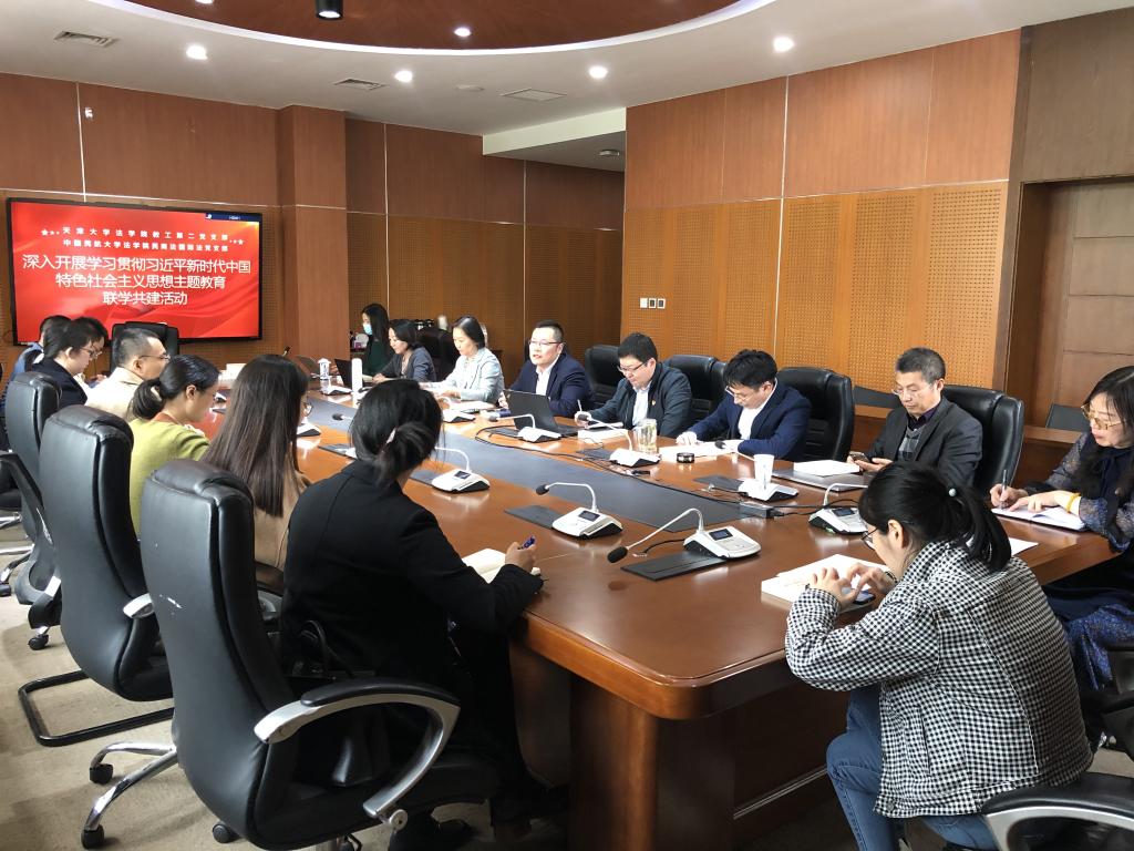 4月14日下午,在天津大学法学院330会议室,我校法学院民法商法国际法教师党支部与天津大学法学院教工第二党支部,开展了“联学共建”主题党日活动。