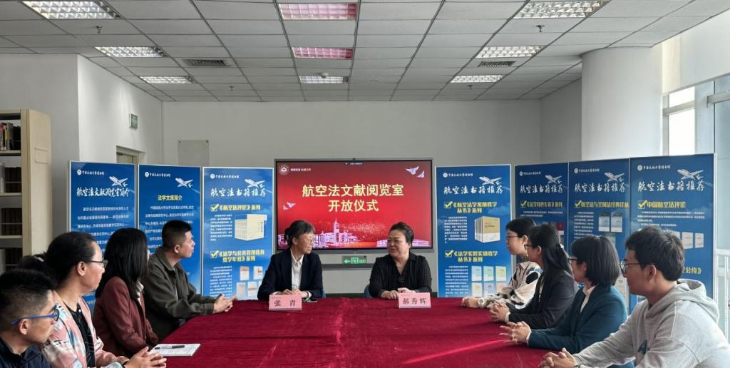 2023年10月17日,位于图书馆三楼的航空法文献阅览室正式开放并举办了开放仪式,法学院院长郝秀辉教授、图书馆馆长张青教授、法学院与图书馆部分师生参加了开放仪式。