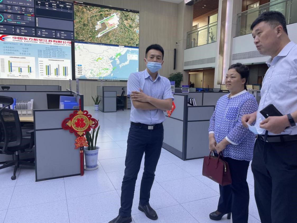 首先,在公司法律事务室主任李宁等的陪同下,法学院两位教授在东航江苏公司进行了参观学习,包括机组控制中心、生产指挥中心、培训中心、空勤业务楼等,深入了解公司发展情况,深切感受到东航江苏公司飞行、客舱、运控、机务等各个部门干部员工的热情和积极向上、勇于开拓创新的精神特质。