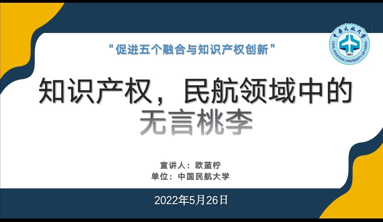 随后,中国民航大学法学院2020级硕士研究生,国家奖学金获得者,第十三届中国民航大学研究生会办公室干事欧蓝柠,从“促进五个融合与知识产权创新”这一角度,进行了题为《知识产权,民航领域中的无言桃李》的云分享发言。欧蓝柠同学从理念融合、人才融合、服务融合、标准融合和工作融合五个方面分享了自己在学习航空法系列课程,参与民航领域理论与实务研究,参加航空法模拟法庭竞赛和民航类“互联网+”比赛,主持研究生科研创新项目的经历中所体会到的对知识产权保护与青年创新的见解与心得。她提到,在民航领域,知识产权的重要性实至名归。随着民航局与中国商飞“五个融合”的不断落实,也给航空领域知识产权保护的发展指明了方向,而当前仍有待完善的民航领域的知识产权保护也为青年积极投身于民航知识产权的钻研,提供了平台、空间与动力。并在发言结尾以青年之声宣誓将放眼未来,在前辈和老师的带领下,谱写青春华章,为更美好的未来而创新,为建设民航强国而奋斗。