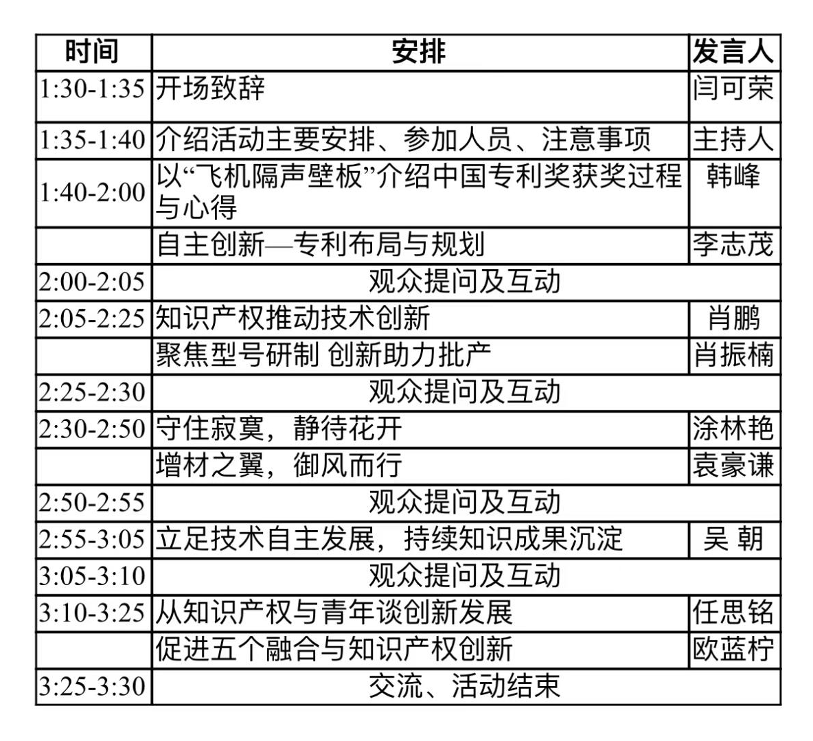 在分享交流环节,上海飞机设计研究院三所功能结构部绝热隔声室室主任韩峰、上海飞机设计研究院二所环控氧气部副部长李志茂、中国商飞复合材料中心高级工程师肖鹏、上飞公司C919事业部机身装配工艺室工艺师肖振楠、北研中心技术总体部部长助理核心处理系统设计三级专业副总师(预研)涂林艳、北研中心方案总体部结构总体工程师袁豪谦、客服中心客户培训与运行事业部培训工程室主任吴朝等青年技术骨干,分享并交流了在科技探索、型号研制、制造服务等创新创造活动中的知识产权保护经验。