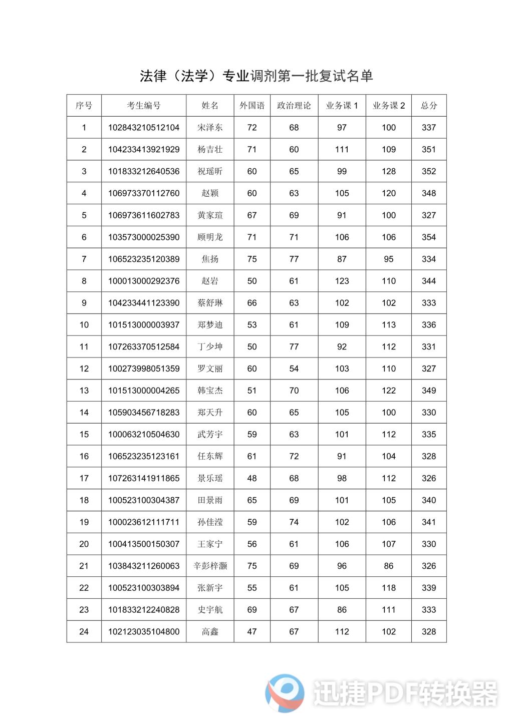 2023年法律(法学)专业调剂第一批复试名单公示