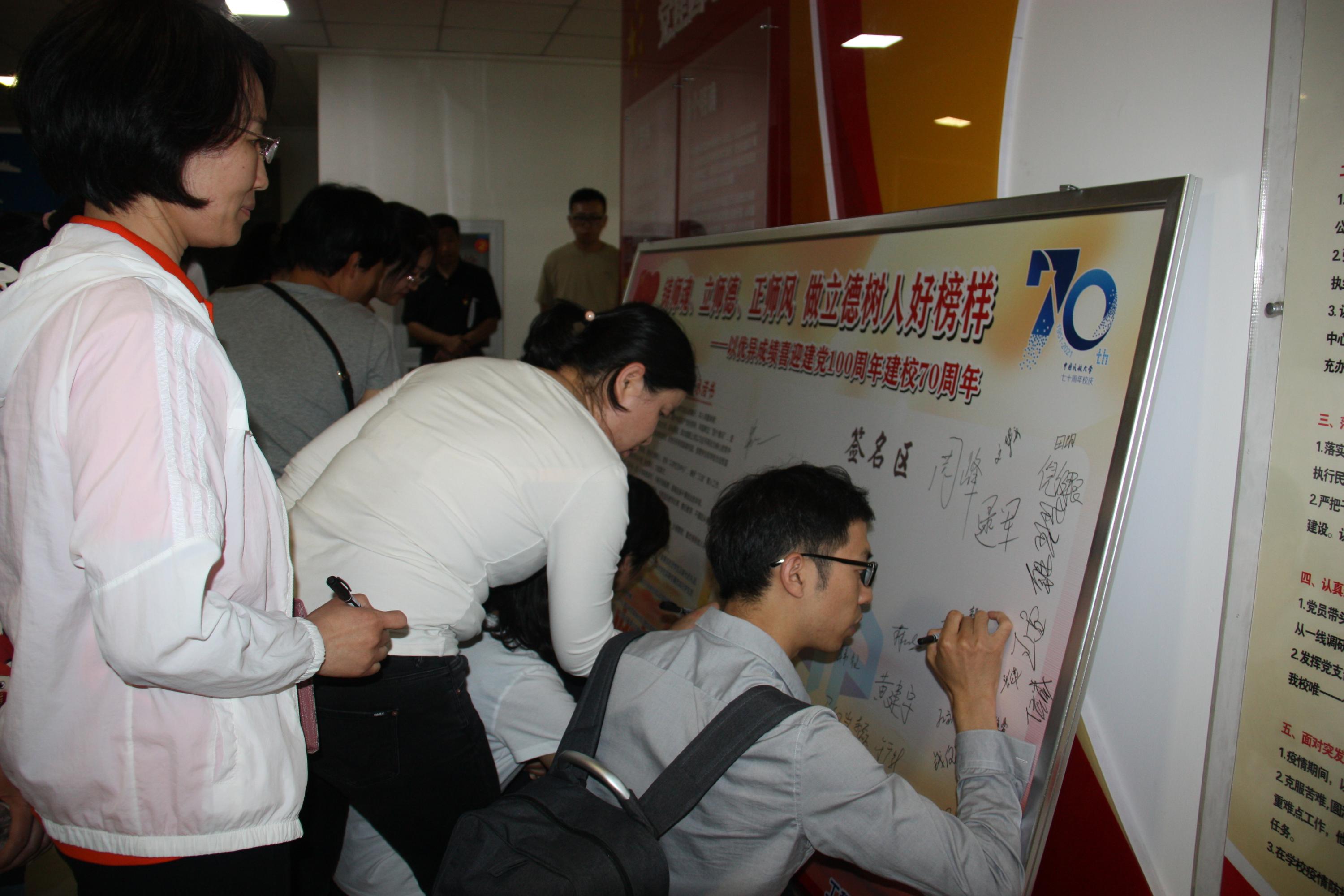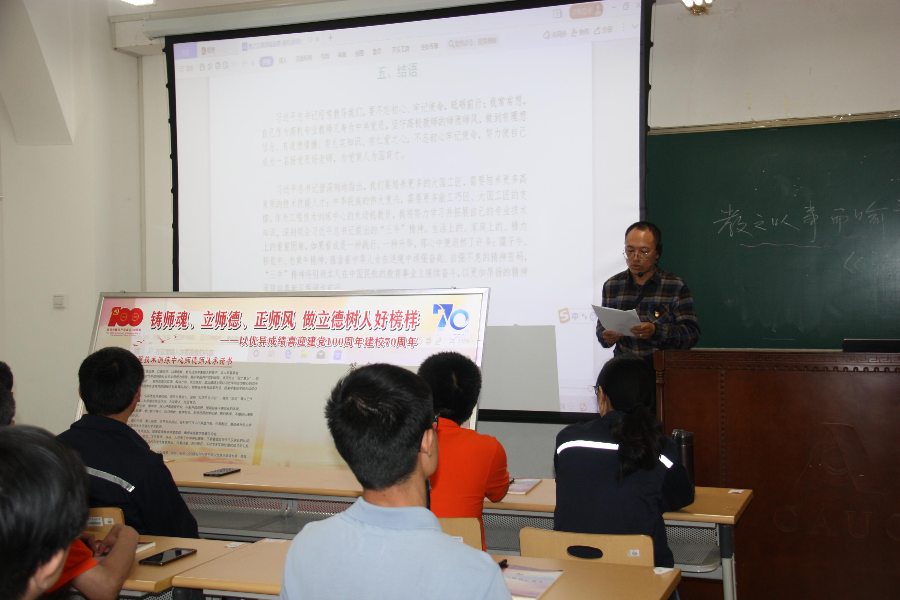 报告结束后,谢钧老师作代表中心全体教职员工对工程技术训练中心师德师风承诺书》进行了宣誓,全体教职工在承诺书展板上进行了庄重的签名。