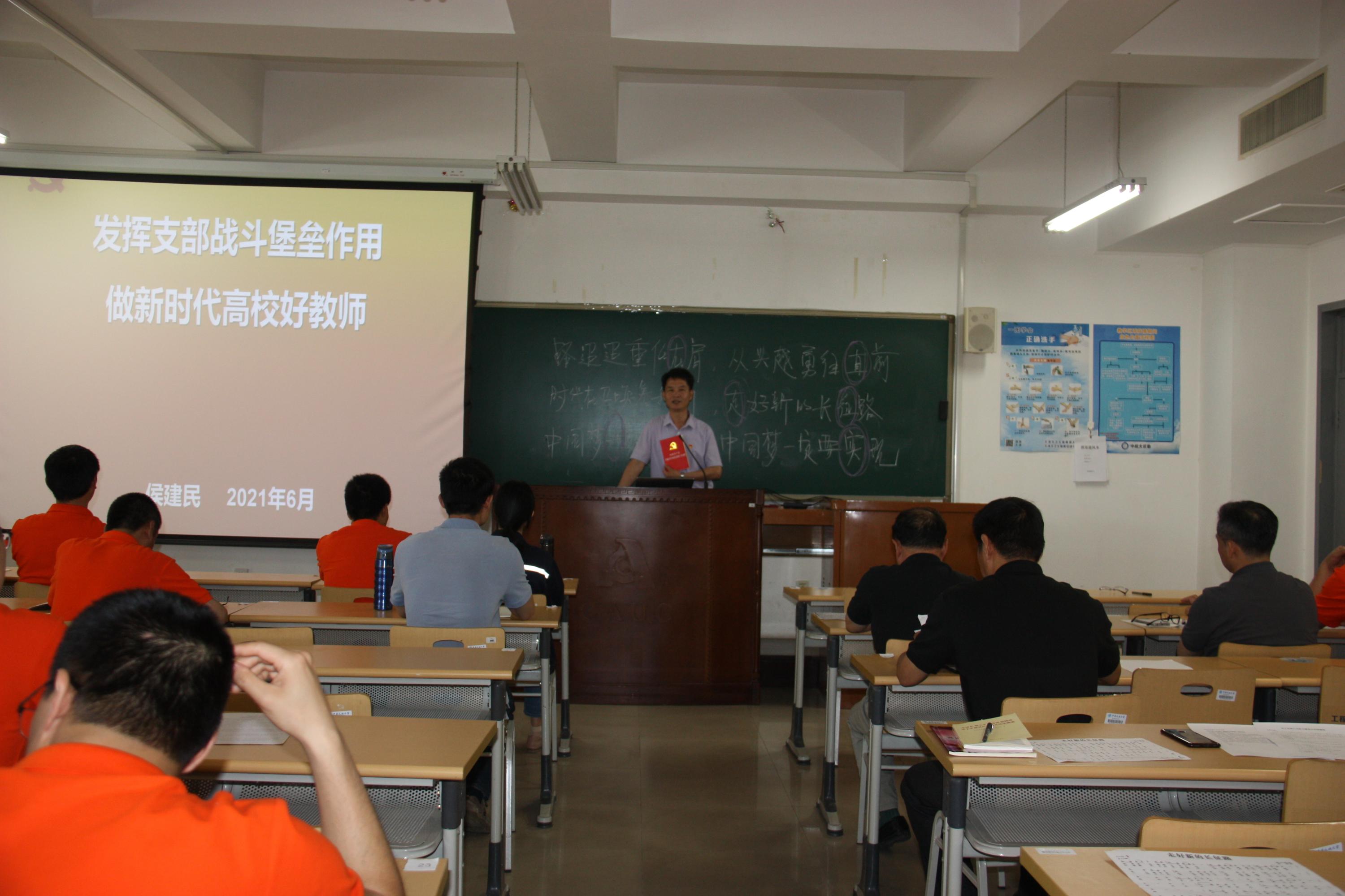 首先,工训中心党委班子侯建民围绕党的思想建设开展了“发挥支部战斗堡垒作用,做新时代高校好教师”的主题党课。结合党的光辉发展历程,结合教师岗位,阐述了如何做“四有”好老师。