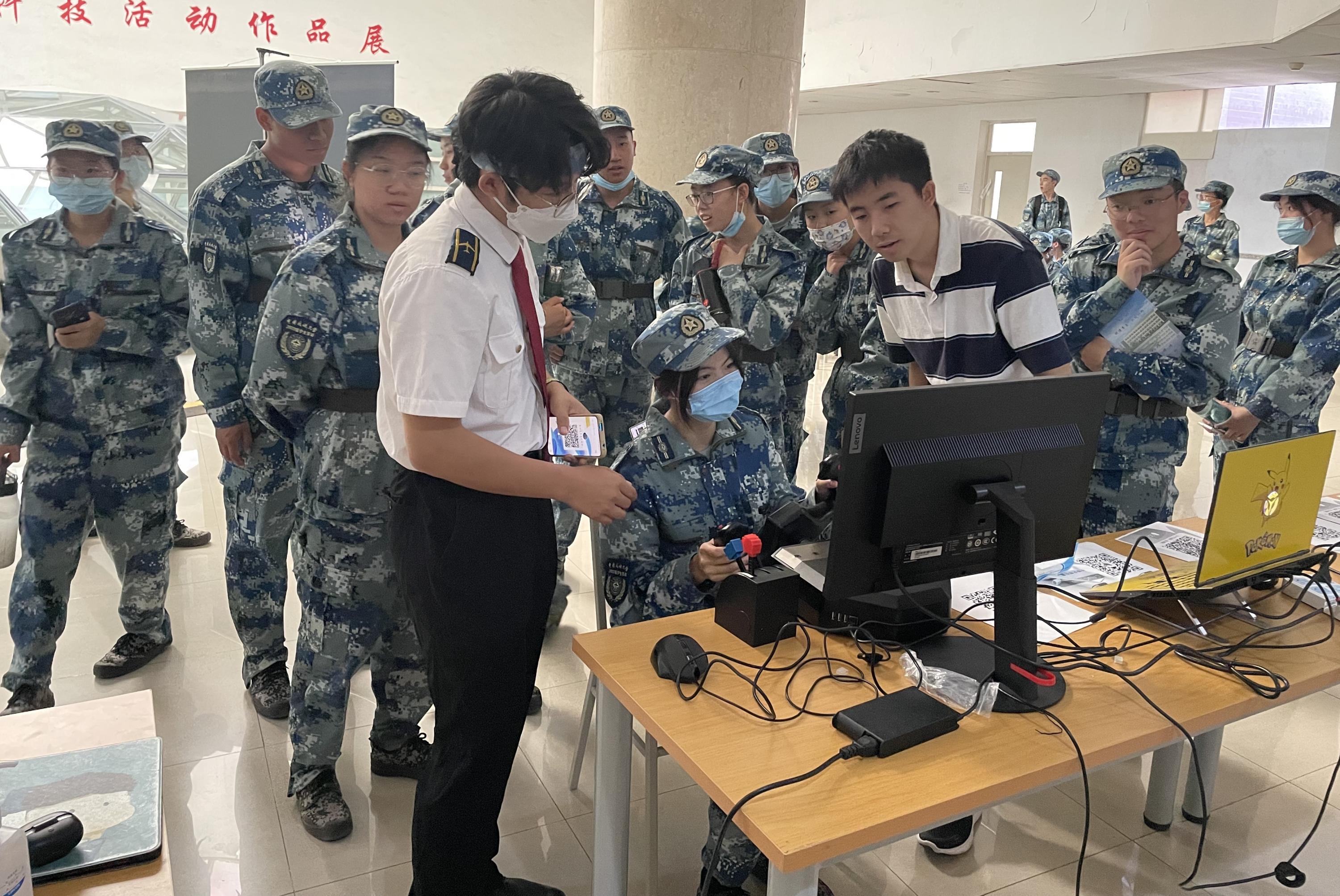 现场演示环节学长们还邀请新生进行了实践体验,同学们兴趣十足,表现出了极大的热情和喜爱。在3D打印区,新生们情不自禁地拿起展示区的各种3D打印作品并合影留念。不少同学表示,在切身体验科技所带来的便利与乐趣的同时,更感受到了科技创新的独特魅力,也坚定了通过科技创新实现自我价值、回报社会的决心和信心。