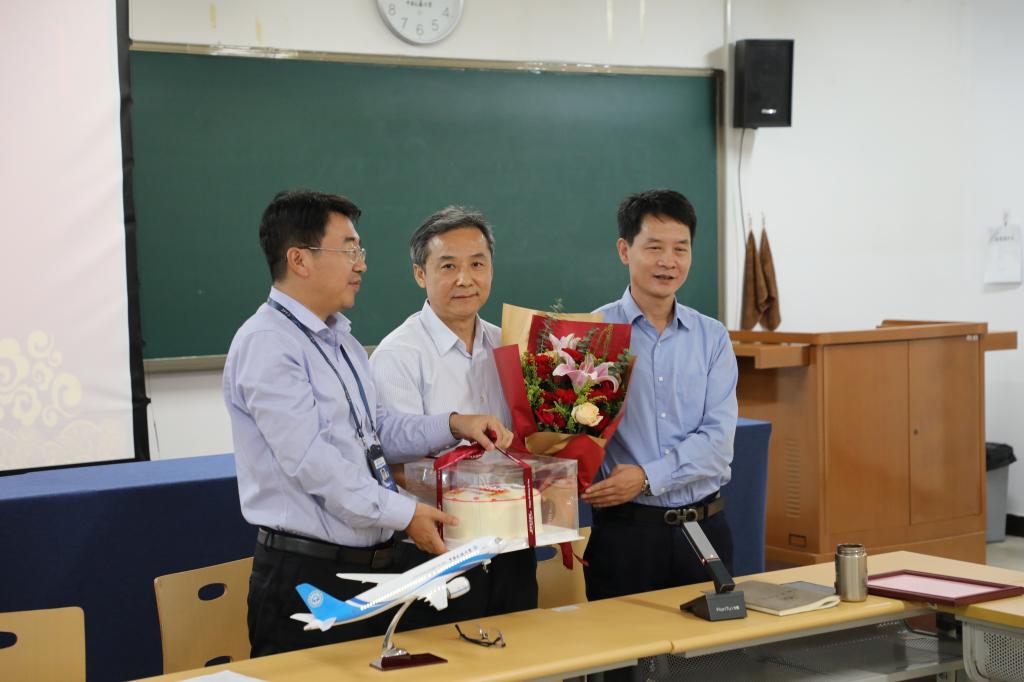 最后,樊智勇和侯健民分别为张教授送上鲜花和退休纪念品。