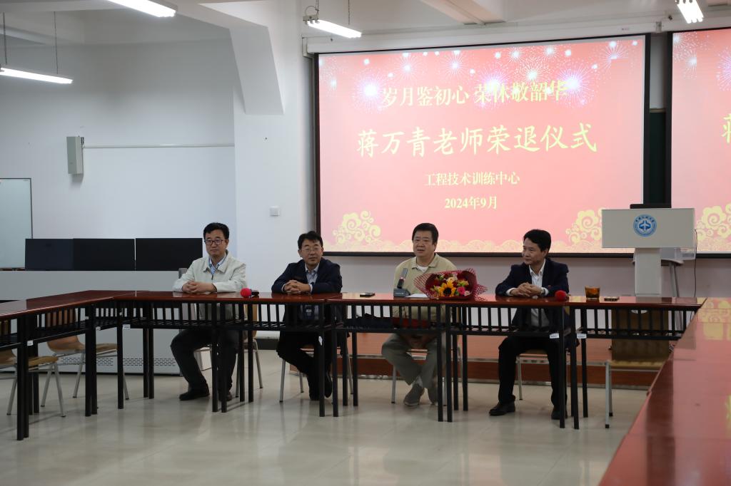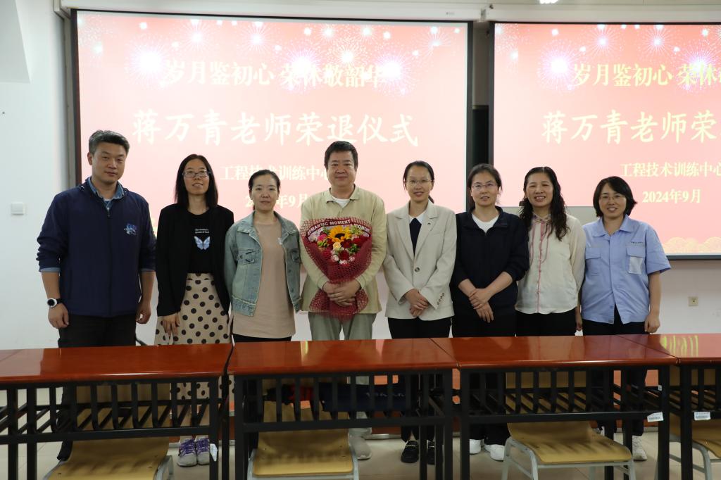 岁月印初心、薪火永相传。9月30日,工程技术训练中心在北教22-226会议室举办蒋万青老师荣退仪式,中心全体领导和部分教职工代表参加活动。