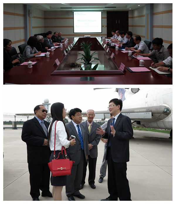 座谈会前,吴仁彪陪同泰国东亚大学校长Chotiras Chavanich一行参观学校停机坪、工程技术训练中心实习车间、发动机大厅、中国民航空中交通管理研究基地、中欧航空工程师学院、乘务学院。泰国东亚大学副校长Supakanya Chavanich、顾问、校长助理及航空学院、文理学院相关负责人,中国民航大学党办校办、国际处、教务处、研究生部相关负责人参加。