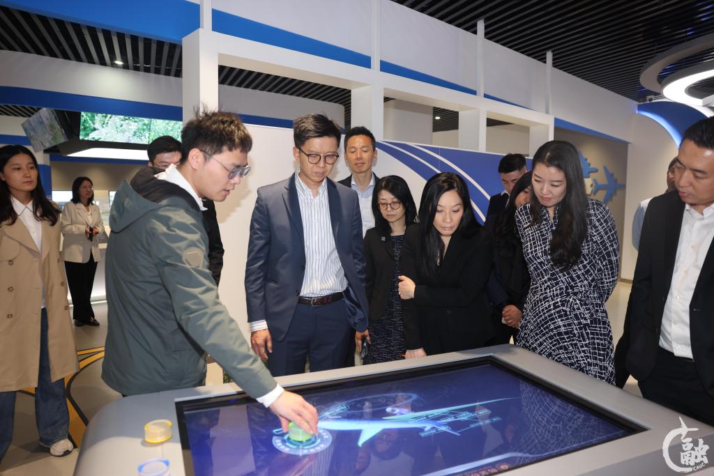 会后,香港国泰航空代表团一行参观校史馆、工训技术训练中心、民航体验馆、空中交通管理学院仿真实验室、机械材料实验室、乘务学院动态模拟舱、水上撤离训练器等学生实习实践设施和设备。
